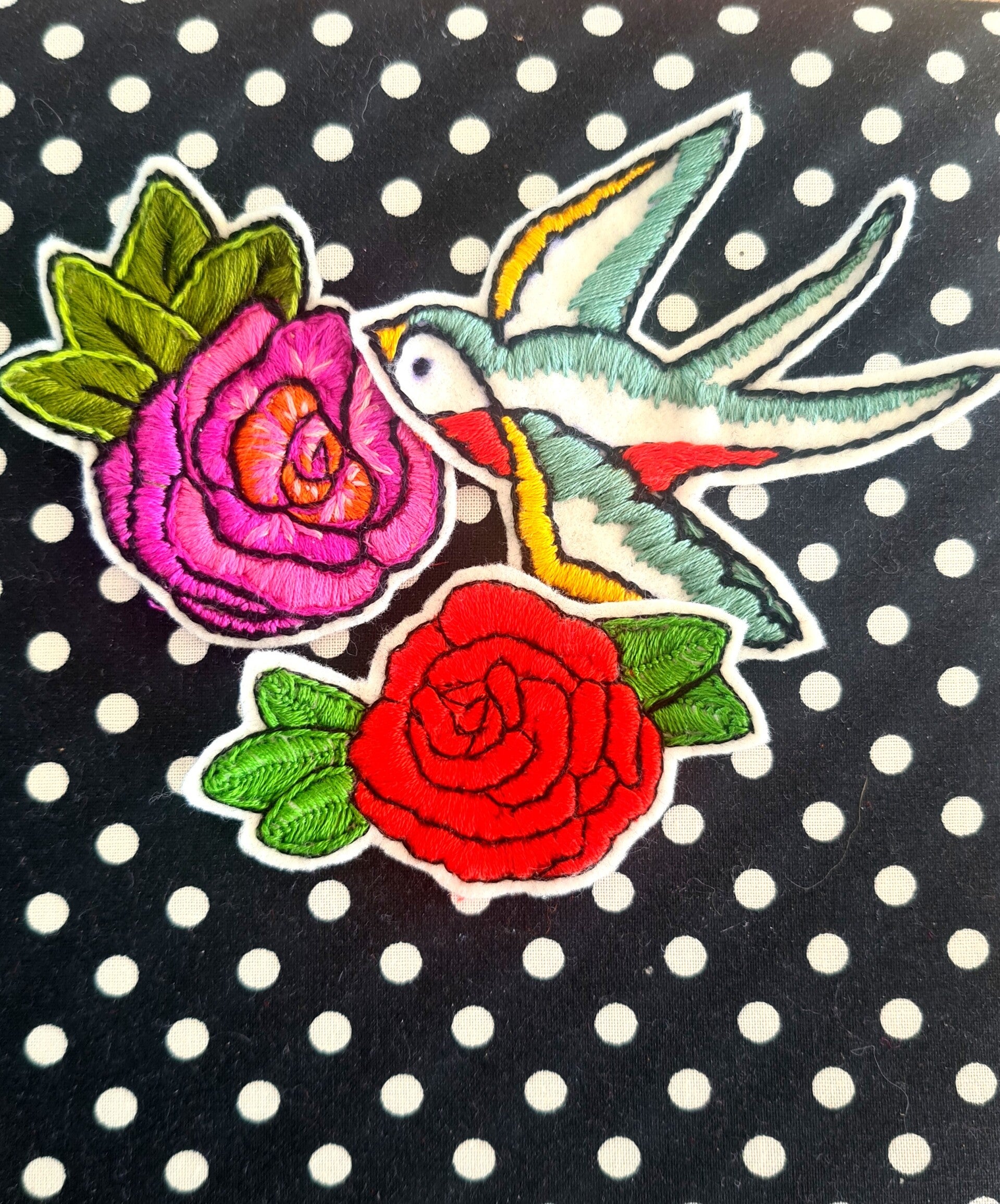 Weet je nog niet waarop je wilt borduren dan is een patch op vilt borduren een goed idee. Kun je later zelf kijken waar je die op naait.