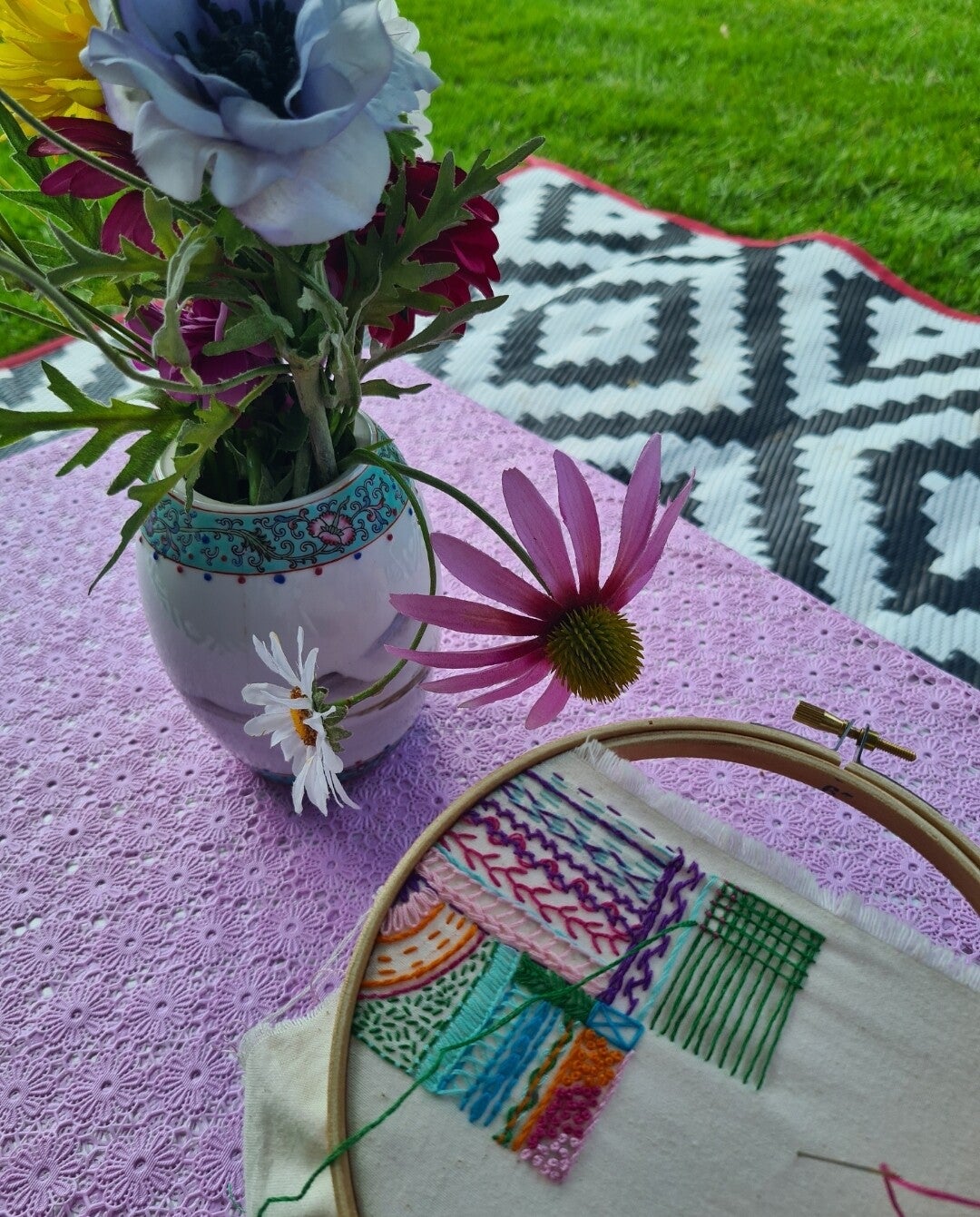 Breng je stoel mee en kom gezellig borduren bij de camper van Sandra. Je borduurt op je eigen meegebrachte kleding. Met verschillende vrije borduur-technieken en steken versier je dat eenvoudige t-shirt, die wat saaie blouse, dat spijkerjack dat iets extra's kan gebruiken of fleur je een schort op. Ook ideaal om een vlekje of klein gaatje weg te werken.