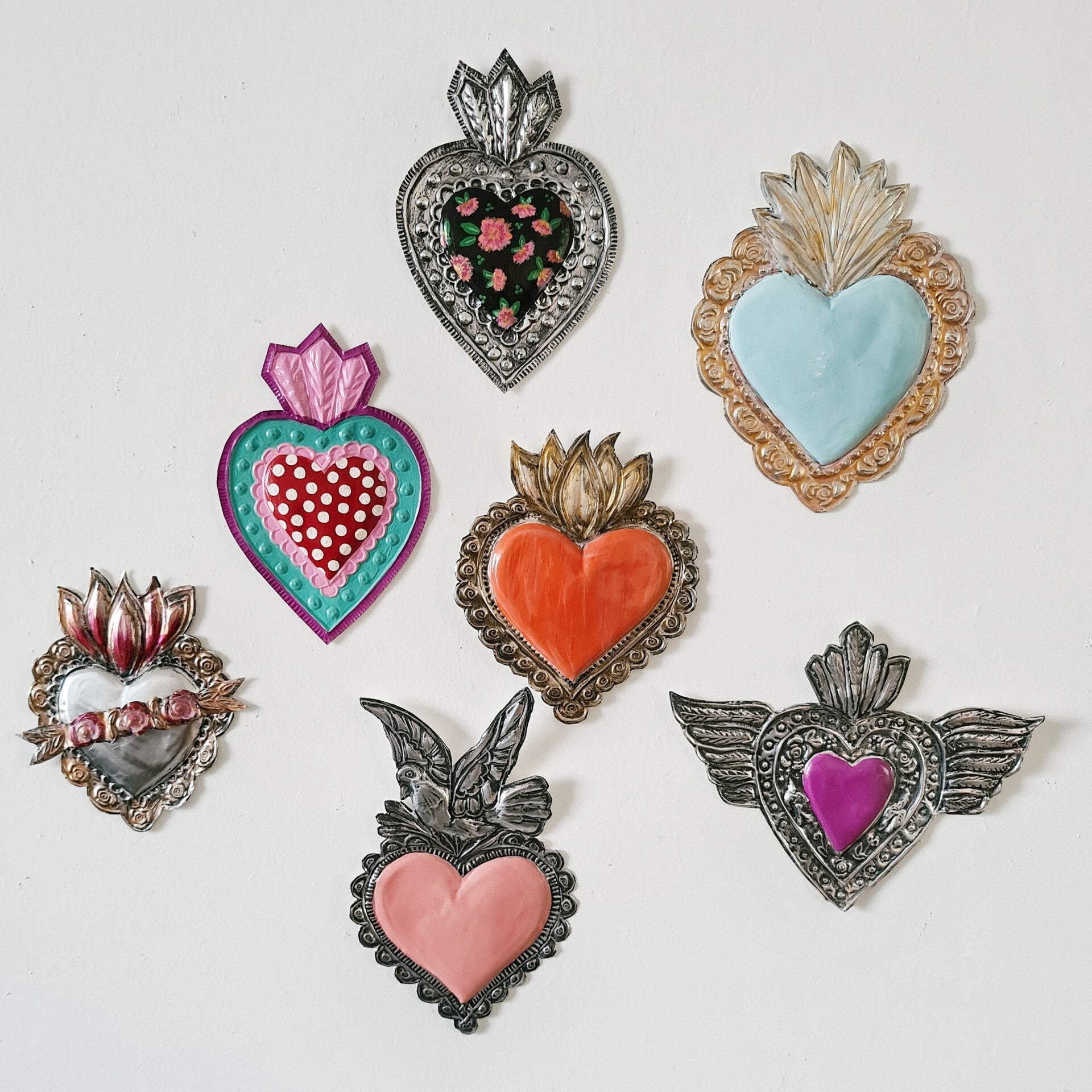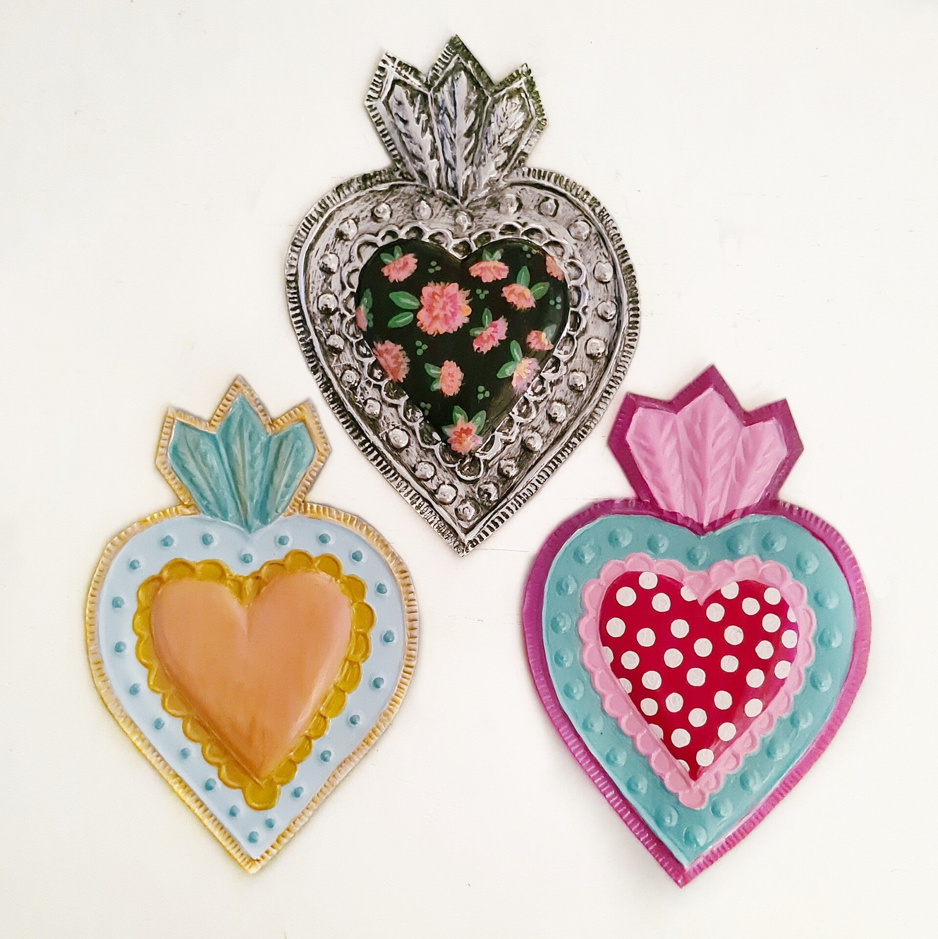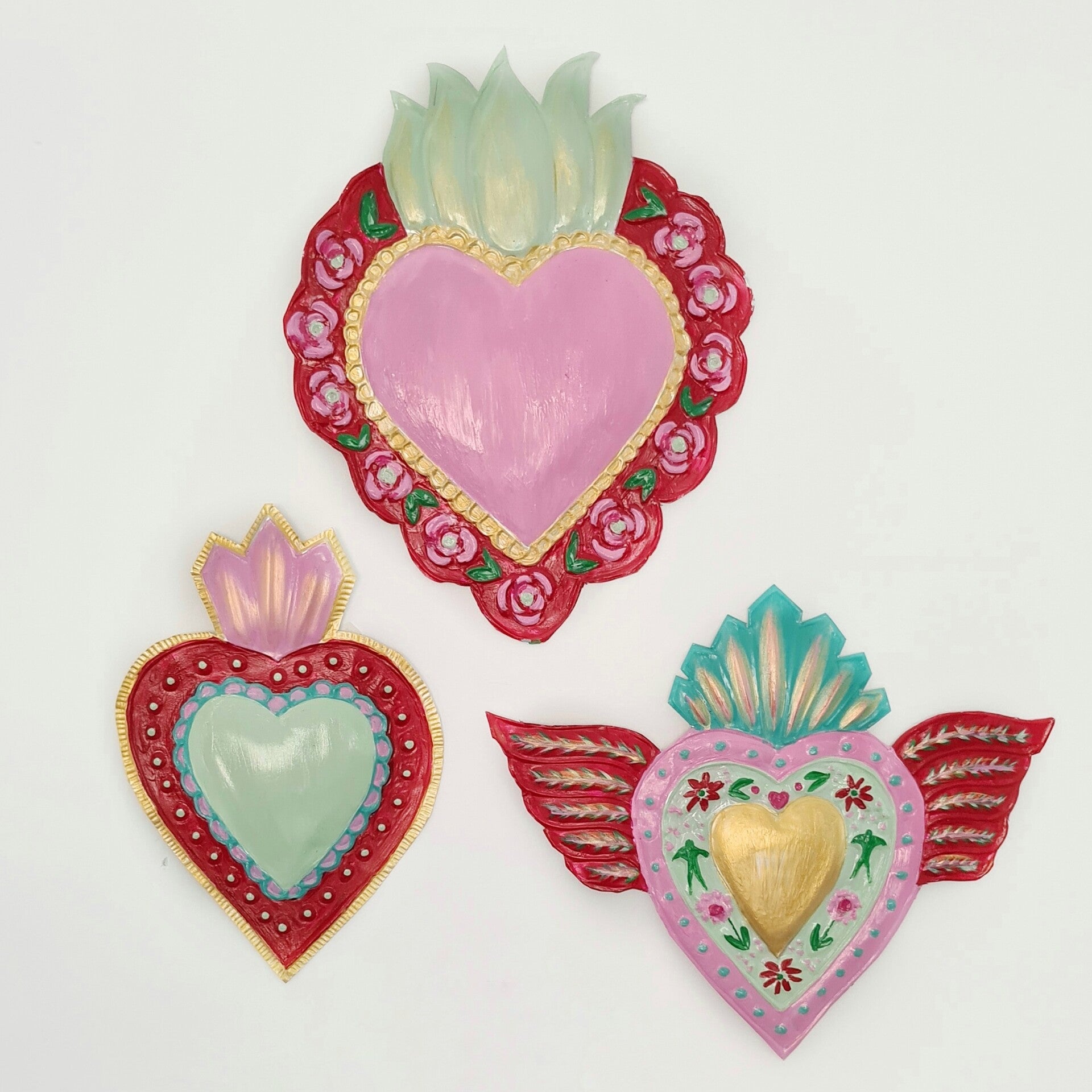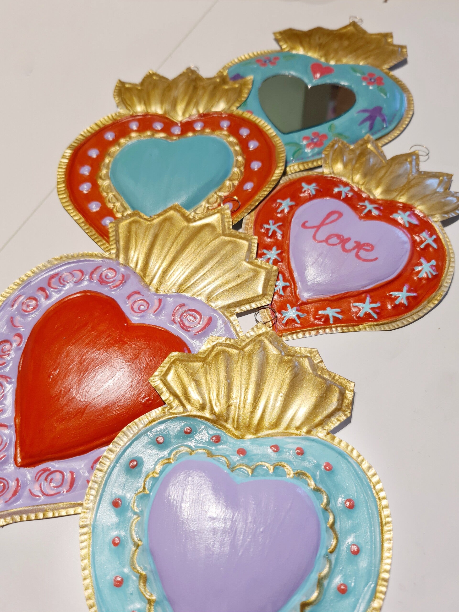 Deze van oorsprong Mexicaanse Harten worden al decennia gemaakt als onderdeel van hun volkskunst. Vaak rijkelijk gedecoreerd en meestal met transparante verf beschilderd.