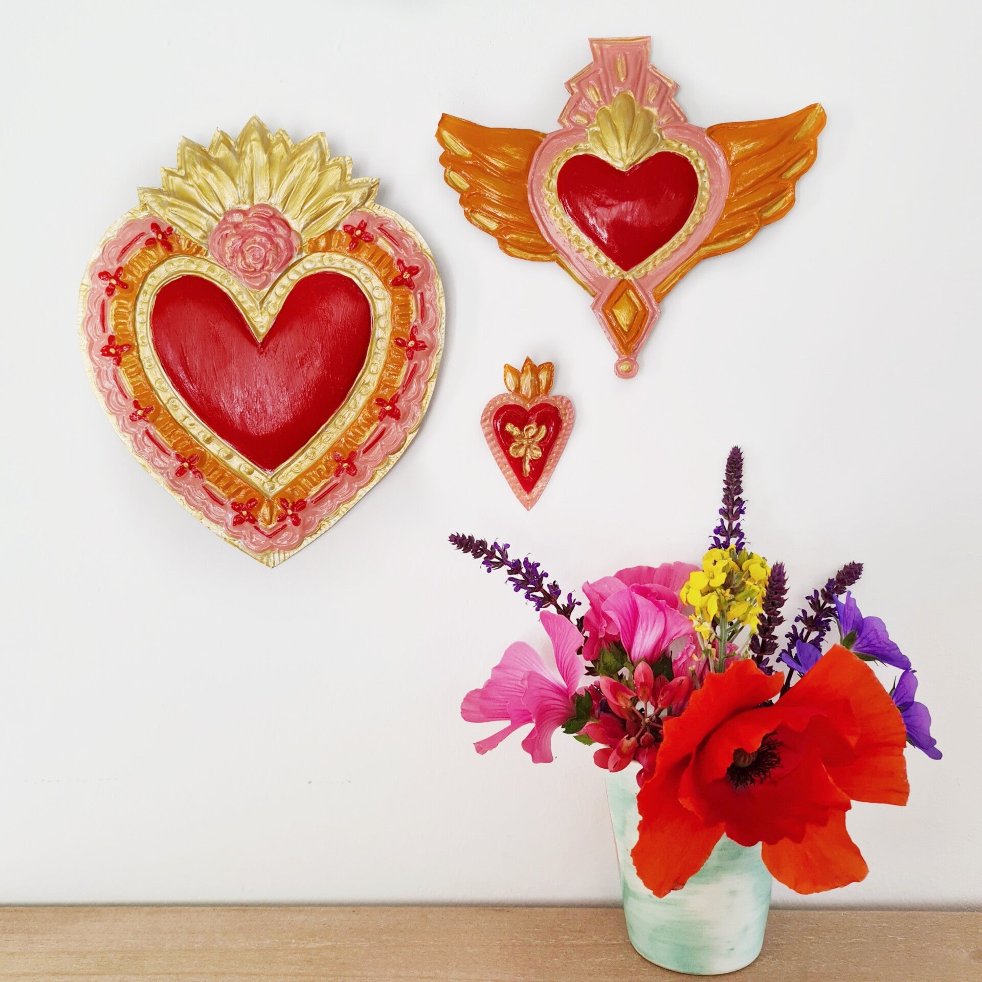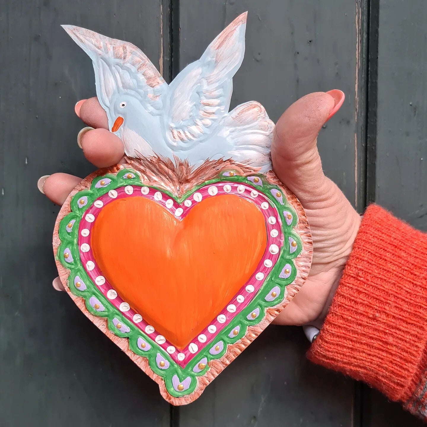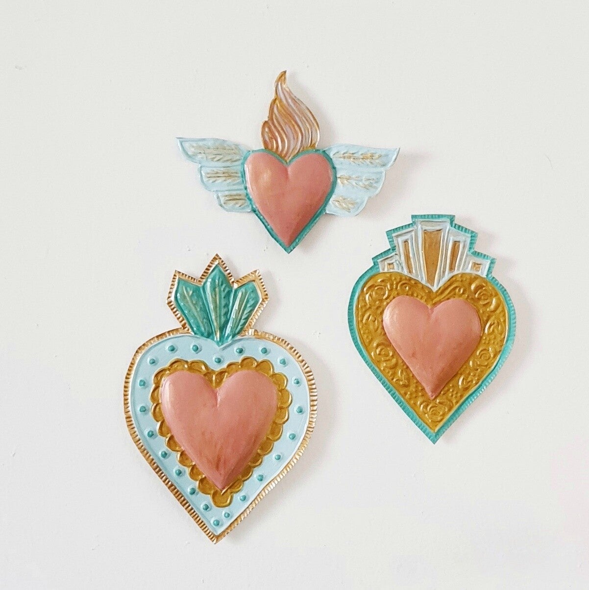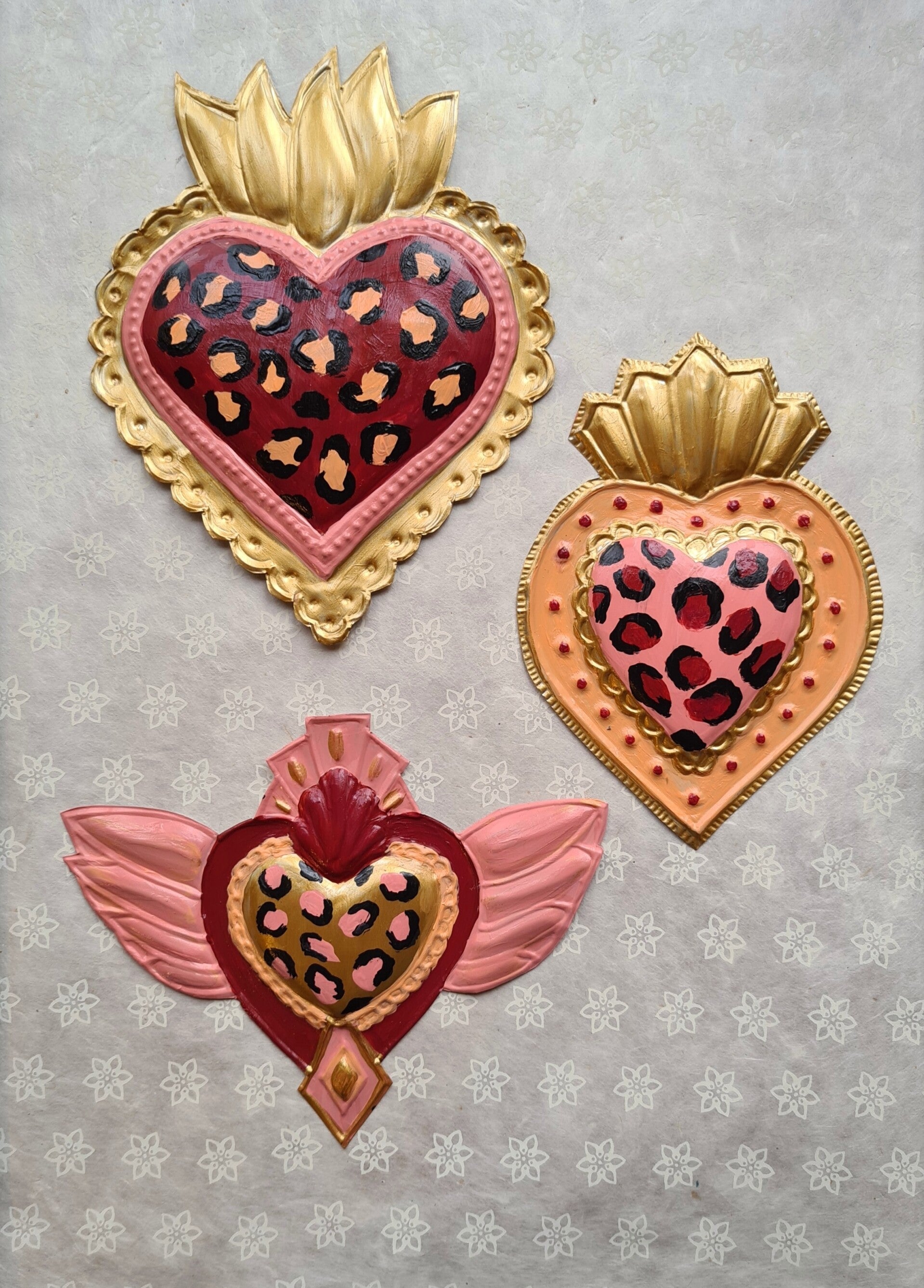 Deze van oorsprong Mexicaanse Harten worden al decennia gemaakt als onderdeel van hun volkskunst. Vaak rijkelijk gedecoreerd en meestal met transparante verf beschilderd.