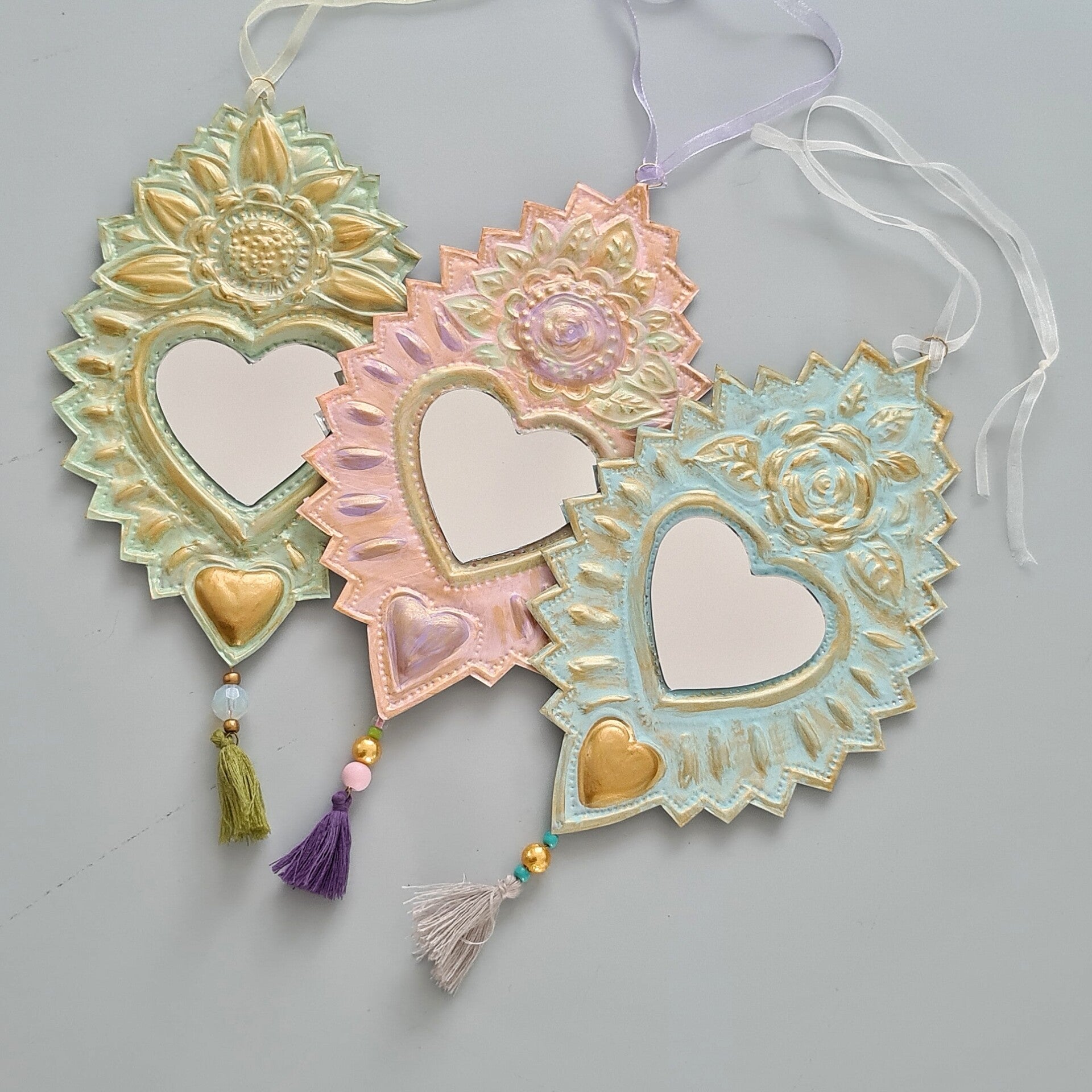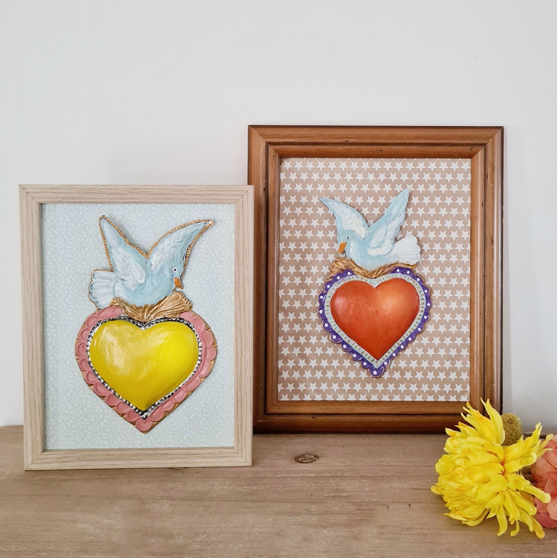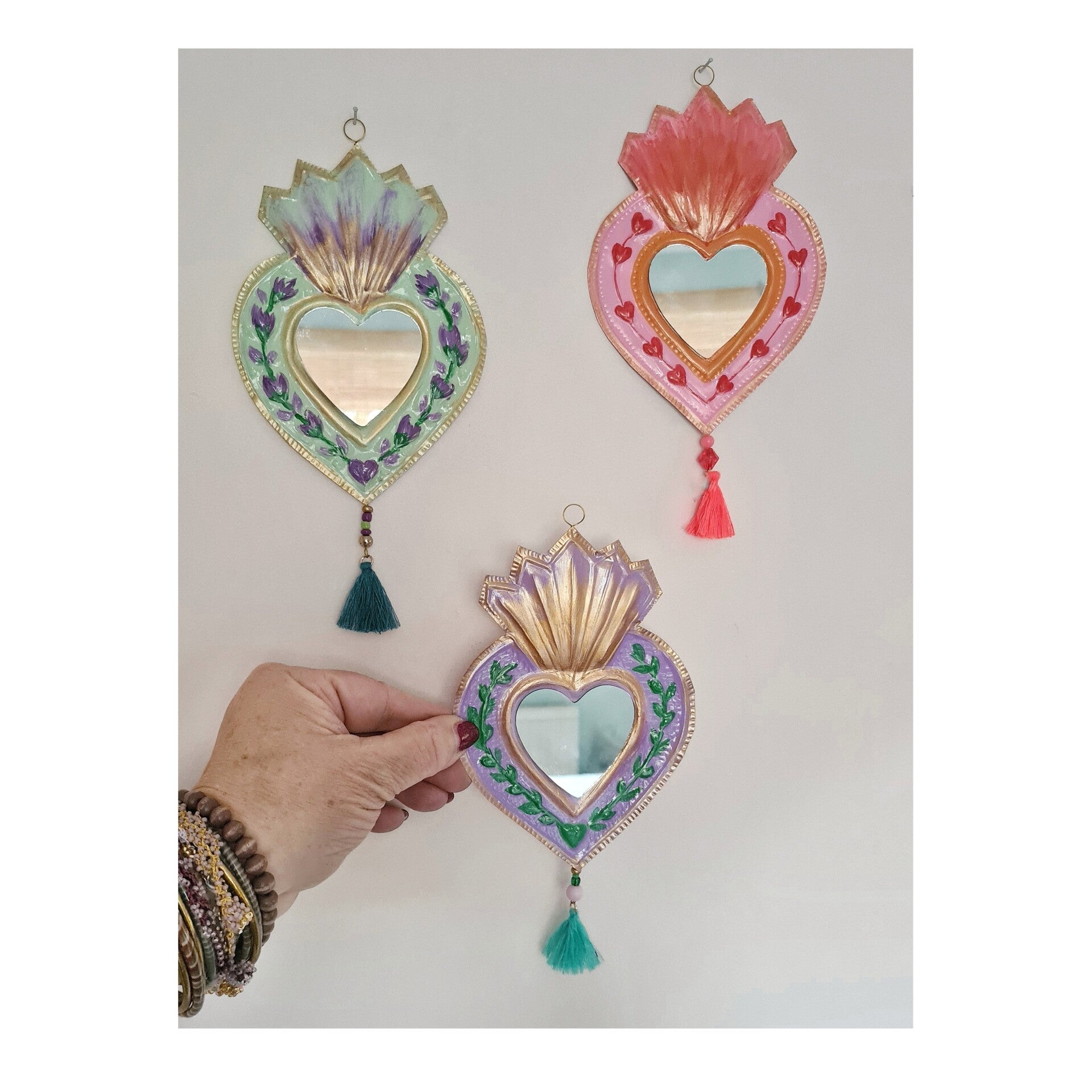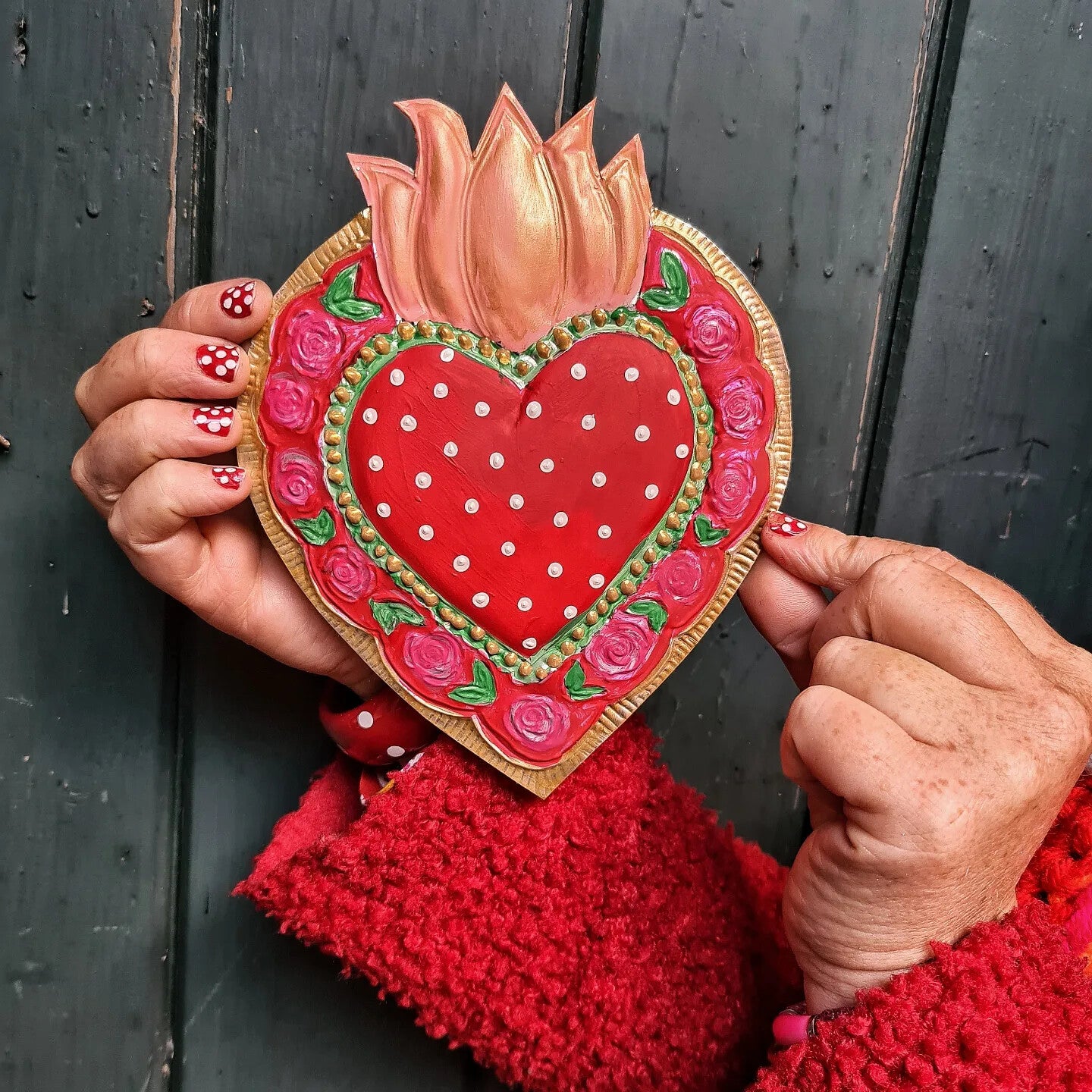 Deze van oorsprong Mexicaanse Harten worden al decennia gemaakt als onderdeel van hun volkskunst. Vaak rijkelijk gedecoreerd en meestal met transparante verf beschilderd.