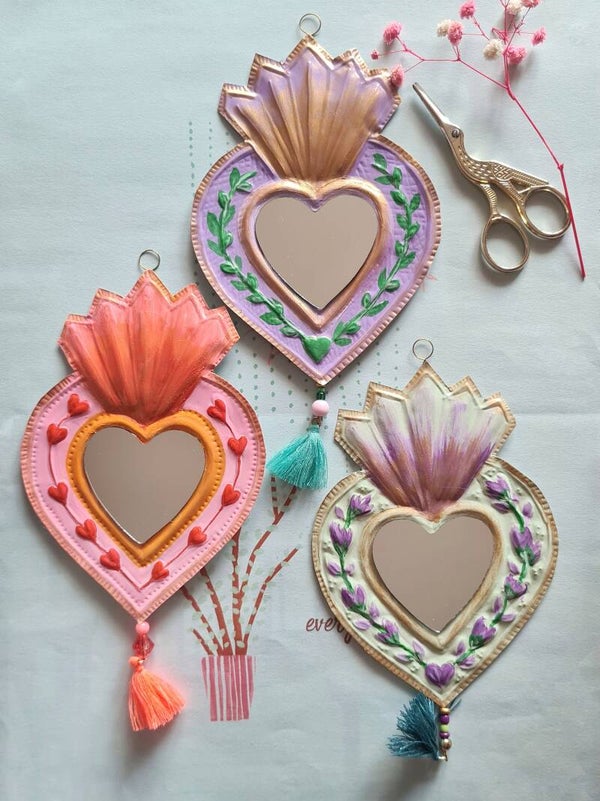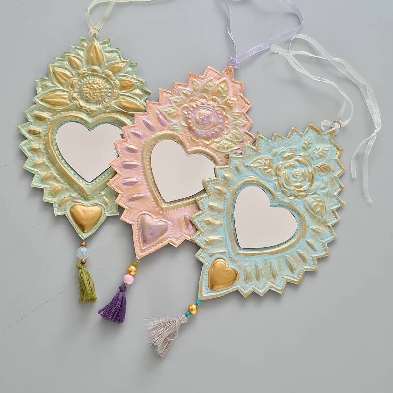 Deze van oorsprong Mexicaanse Harten worden al decennia gemaakt als onderdeel van hun volkskunst. Vaak rijkelijk gedecoreerd en meestal met transparante verf beschilderd.