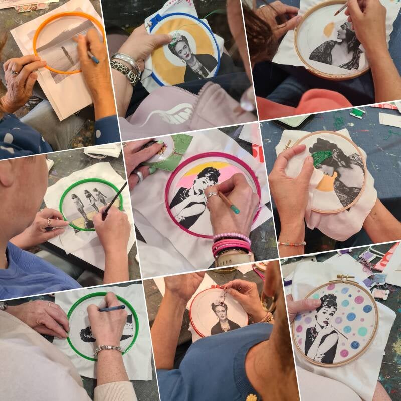 In deze workshop decoreer en borduur je een zwart/wit foto die afgedrukt is op textiel.